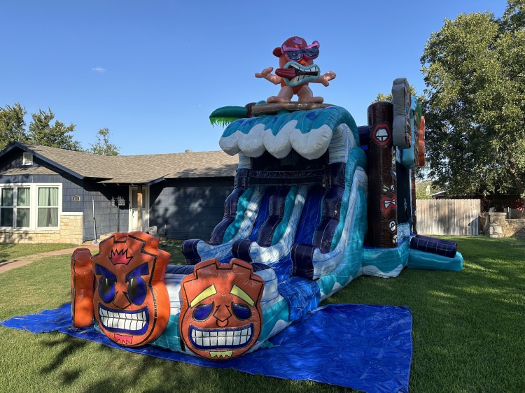 - OCCUPANCY: A maximum of 5-6 kids of equal size at one time for bounce houses, and 1 person at a time for slides is what most inflatable manufacturers recommend.